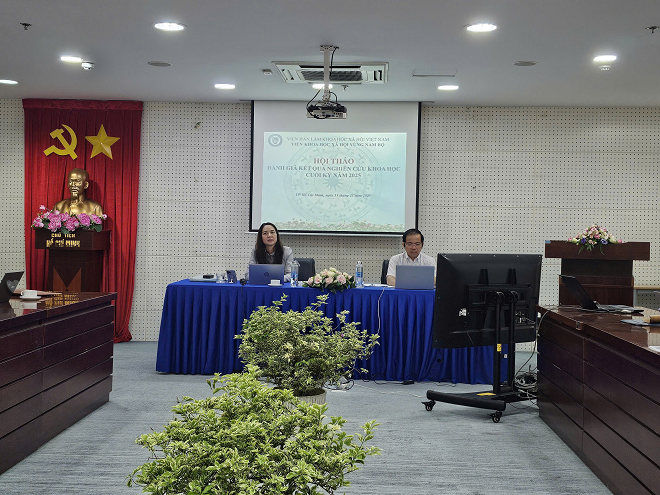 Ngày 13/11/2025, Viện Khoa học xã hội vùng Nam Bộ đã tổ chức Hội thảo Đánh giá kết quả nghiên cứu khoa học cuối kỳ năm 2025. Hội thảo nhằm chia sẻ thông tin, trao đổi học thuật và công bố kết quả nghiên cứu khoa học trong năm 2025.