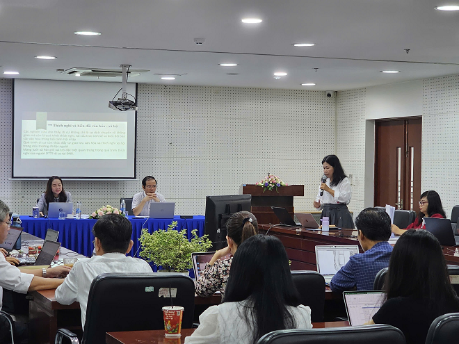 Các bài tham luận trình bày tại Hội thảo đã nhận được nhiều ý kiến trao đổi, bình luận của các nhà nghiên cứu trong Viện. Sự trao đổi, thảo luận khoa học sôi nổi của nhiều thế hệ chuyên gia và nhà nghiên cứu tại Hội thảo đã ghi nhận những nổ lực nghiên cứu của các chủ nhiệm đề tài, đồng thời giúp các nghiên cứu viên định hướng rõ hơn vấn đề nghiên cứu, phương pháp tiếp cận, cũng như kết quả nghiên cứu cần hướng tới. Có thể thấy, với nhóm nhiệm vụ khoa học cấp Bộ và cấp Cơ sở” đã mang đến cho Hội Thảo nội dung nghiên cứu phong phú, có tính thời sự và thực tiễn với nhiều chủ đề khác nhau, đa ngành về khoa học xã hội.