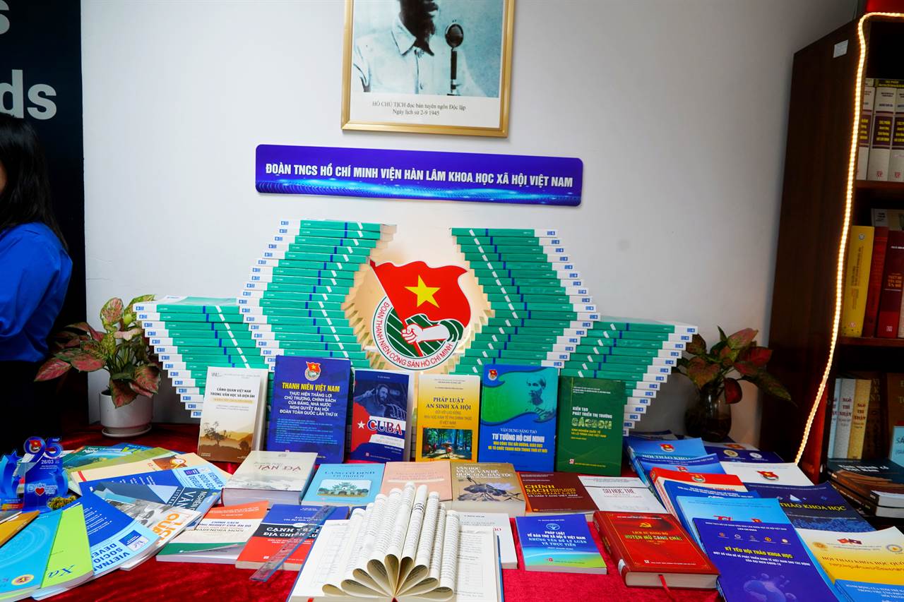 Chủ tịch Lê Văn Lợi tham quan không gian trưng bày Sách của Thanh niên Viện Hàn lâm