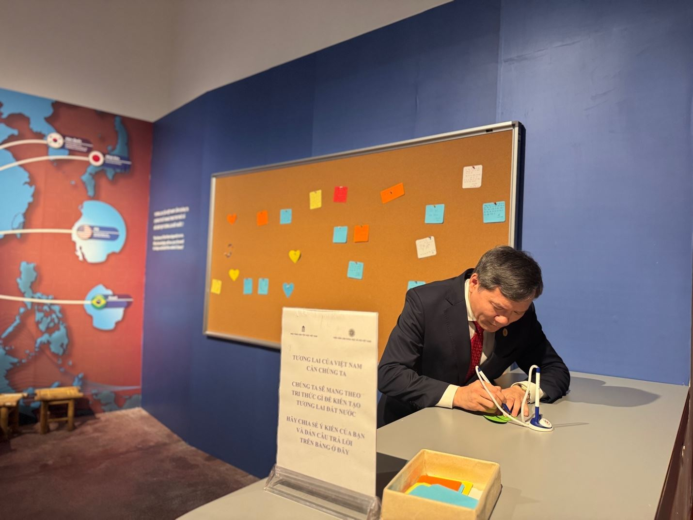 Qua không gian trưng bày, người tham dự có thể thử nghiệm vai trò của một nhà nghiên cứu thông qua việc ghi chép vào “Sổ điền dã” và tham gia bảng tương tác với chủ đề “Tương lai của Việt Nam cần chúng ta”. Câu hỏi gợi mở “Chúng ta sẽ mang theo tri thức gì để kiến tạo tương lai đất nước?” đã thu hút nhiều ý kiến chia sẻ sâu sắc, tạo nên một không gian đối thoại ý nghĩa giữa tri thức khoa học xã hội và trách nhiệm công dân, đặc biệt là đối với thế hệ trẻ.