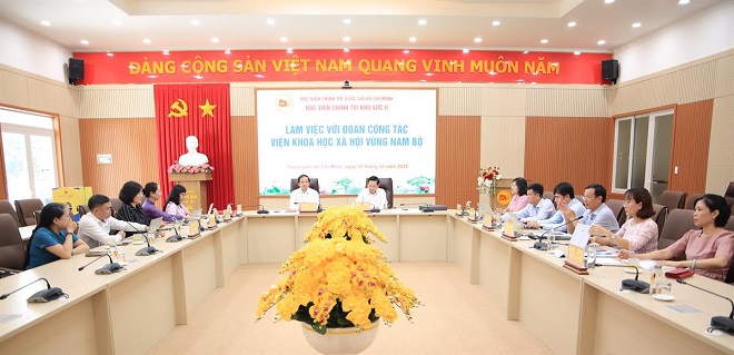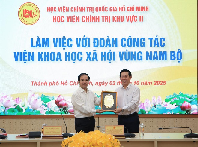 BUỔI LÀM VIỆC GIỮA VIỆN KHOA HỌC XÃ HỘI VÙNG NAM BỘ VÀ HỌC VIỆN CHÍNH TRỊ KHU VỰC II