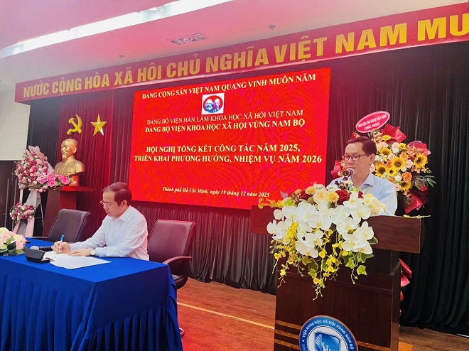 Báo cáo tổng kết tập trung vào đánh giá các kết quả công tác Đảng của Viện năm 2025: Năm 2025, công tác nghiên cứu khoa học đạt kết quả khả quan và bám sát các nghị quyết lớn của Đảng. Viện đã tổ chức thành công lễ kỷ niệm 50 năm ngày thành lập Viện Khoa học xã hội vùng Nam Bộ trên tinh thần trang trọng, tiết kiệm. Sự kiện này ghi dấu quá trình hình thành và phát triển của Viện ở vùng Nam Bộ, là dịp để tri ân các thế hệ lãnh đạo, nhà nghiên cứu trong 50 năm qua;