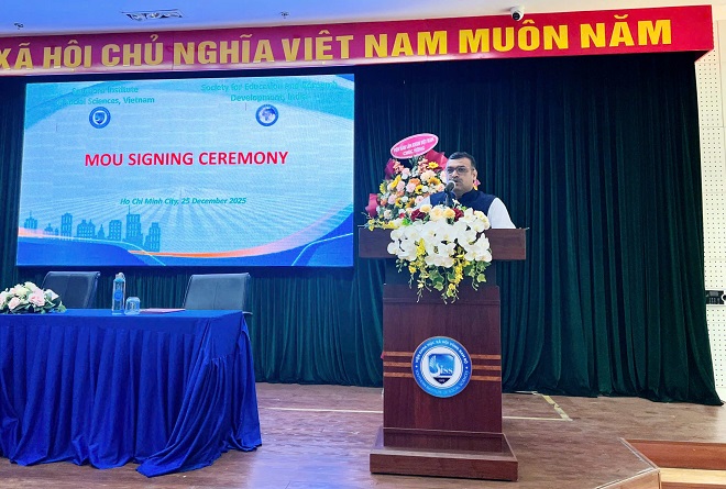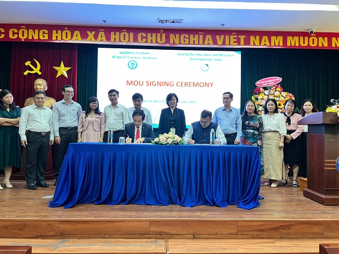 Sáng ngày 25 tháng 12 năm 2025 Viện Khoa học xã hội vùng Nam Bộ, 49 Nguyễn Thị Minh Khai, Phường Sài Gòn, TP. Hồ Chí Minh đã diễn ra Lễ ký kết thỏa thuận hợp tác chiến lược giữa Viện Khoa học xã hội vùng Nam Bộ và Hiệp hội Phát triển và nghiên cứu giáo dục Ấn Độ (SERD), đánh dấu một cột mốc quan trọng trong việc triển khai các nhiệm vụ liên quan đến nâng cao hợp tác nghiên cứu khoa học giai đoạn 2025-2030.